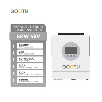 गुटू हाइब्रिड समानांतर सौर इनवर्टर डीसी से एसी 6kva 48v समानांतर फ़ंक्शन दोहरी एसी आउटपुट mppt 27a 6kw सौर ग्रिड टाई इनवर्टर